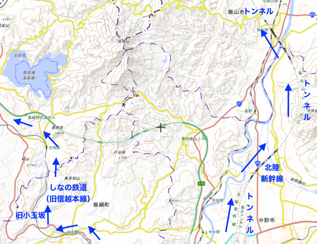 言うまでもなく、道路だけでなく鉄道も、長野から新潟へほぼ同じルートで交通を提供しており、鉄道だけこの小玉坂をまったくのスルー、と言うわけにはいかないはずです。