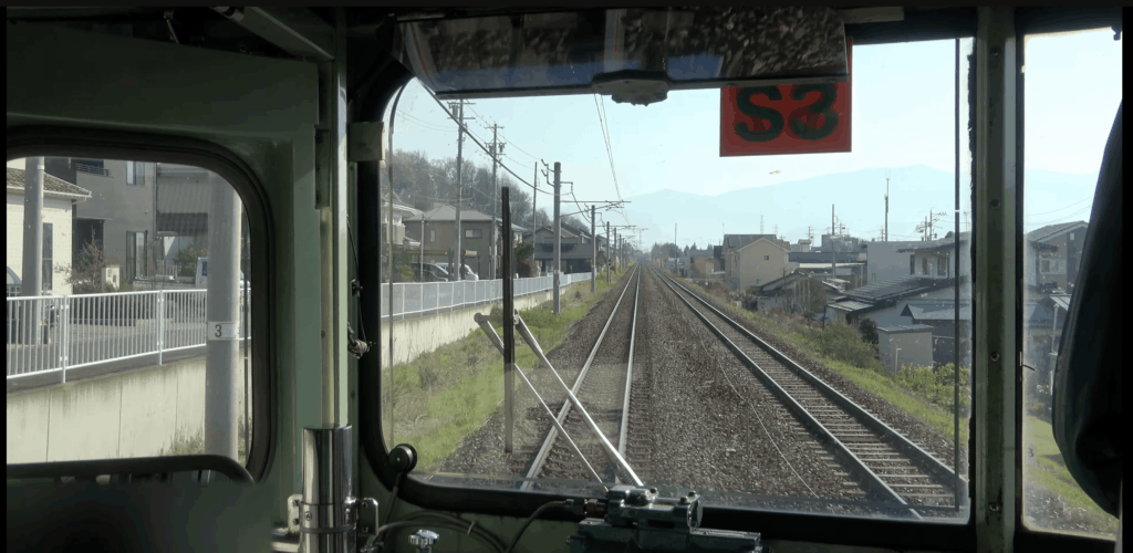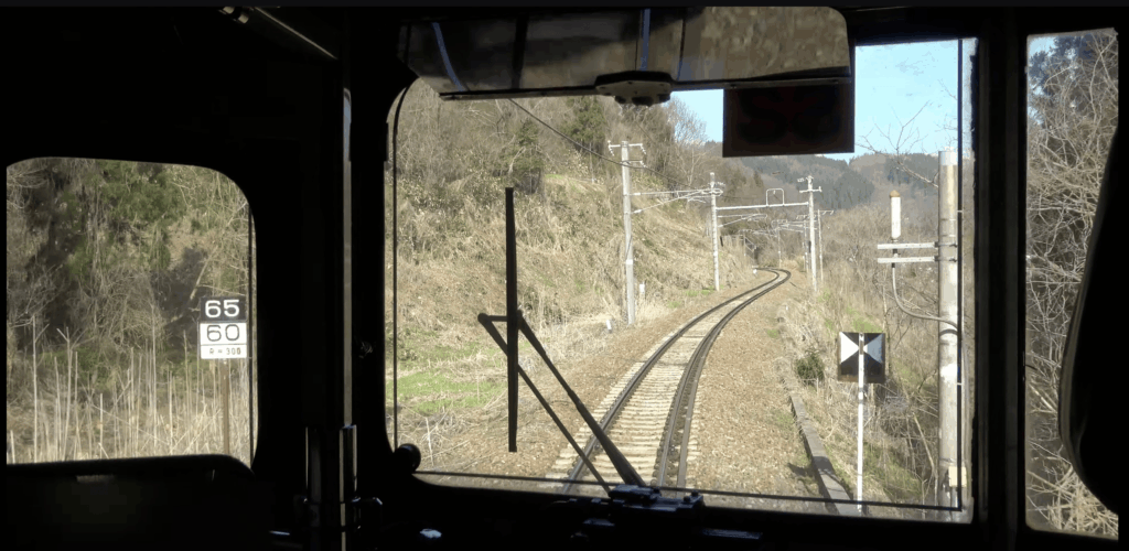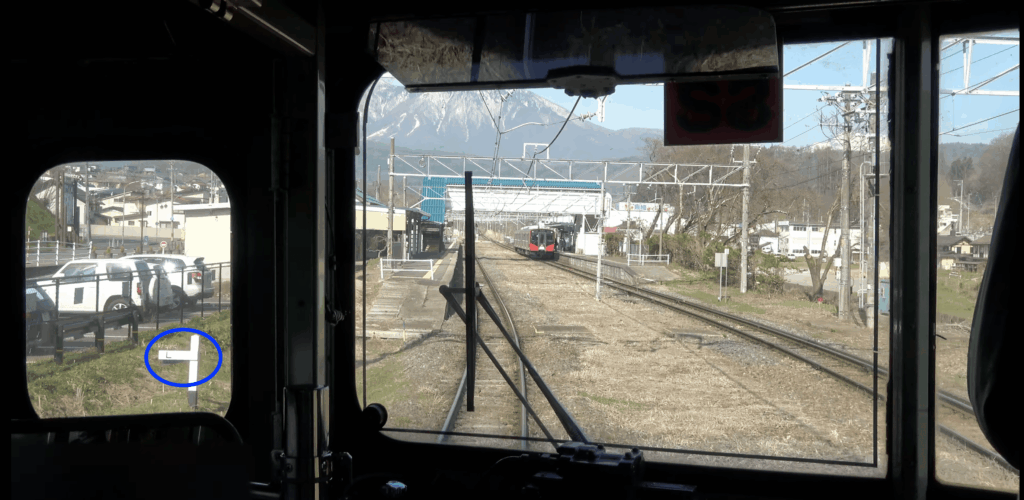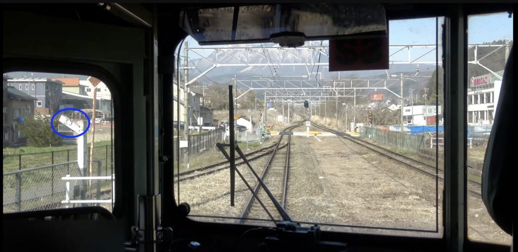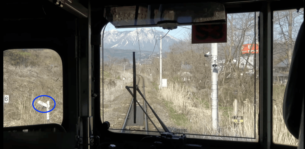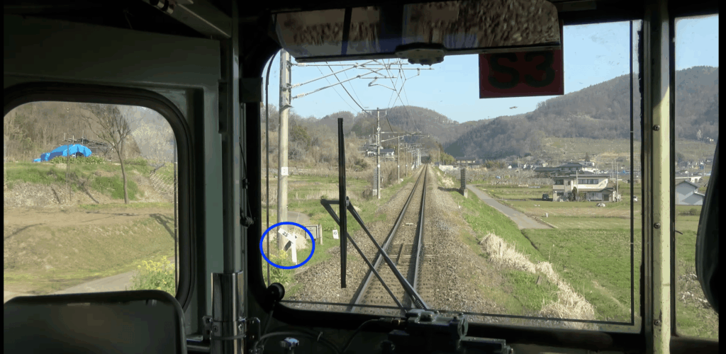 というわけで豊野ー牟礼間の線路の勾配を少し詳しく見てみます。と思ったはいいものの、どうしたものか… 今回はYouTube動画2をチェックしました。電車の前面からの眺めを記録したものを見ていると、「勾配標」といって線路脇に線路の勾配の標識があり、それで確認できます。