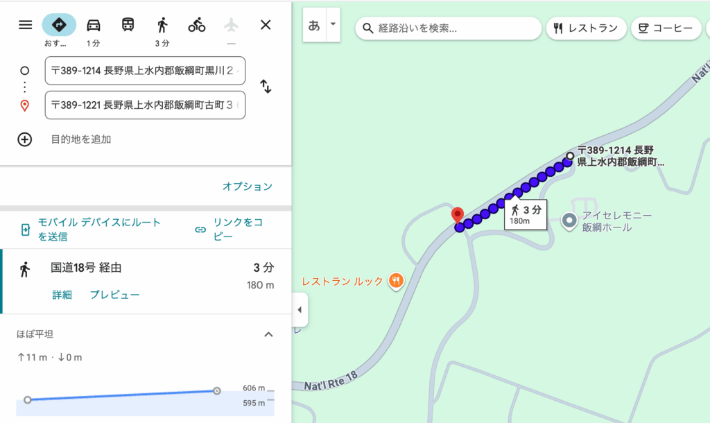 以前の記事で取り上げた七曲バス停のあたり(国道18号で、小玉を越えた後の登坂車線、レストランのあるあたり)はどうでしょう。Googleマップで徒歩モードだと距離と高低差を知ることができます: