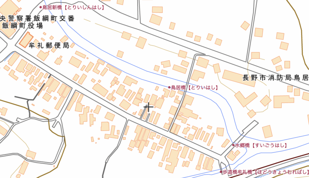 そしてそれを過ぎたところには鳥居川が流れていて、渡るための橋があります。